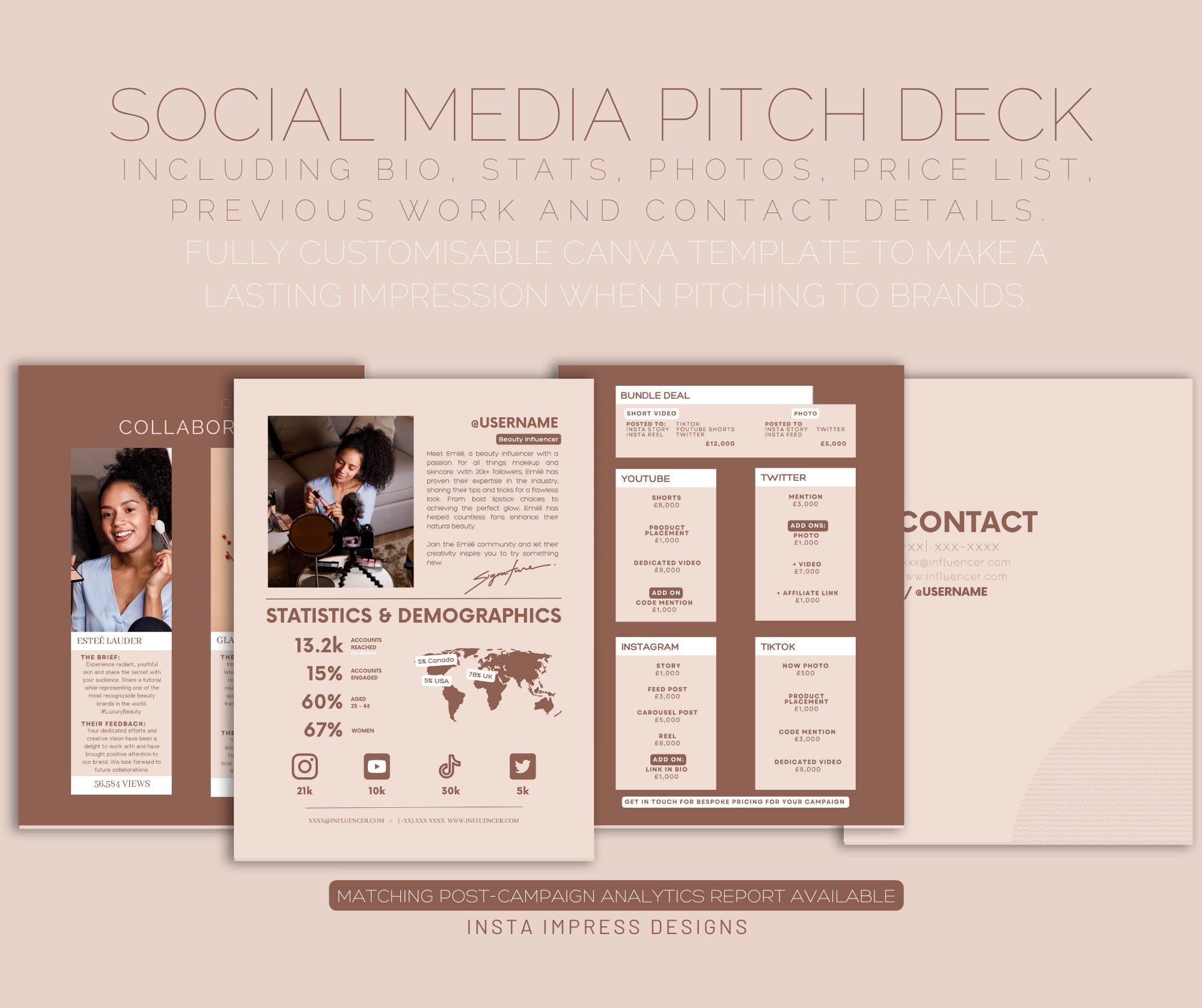 Social Media Pitch Deck Canva Template for Creators Influencers to