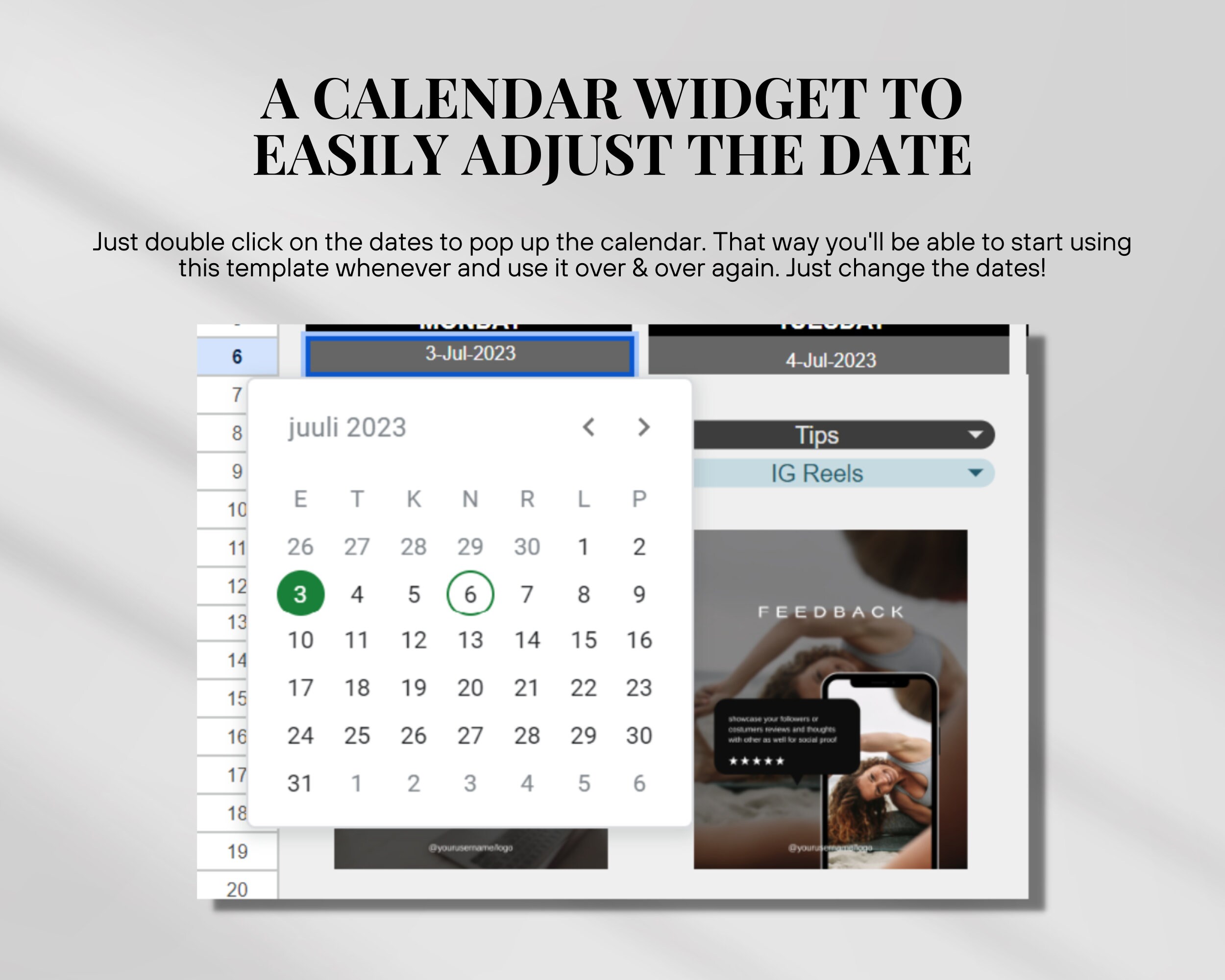 Social Media Planner Excel Spreadsheet Digital Content Calendar