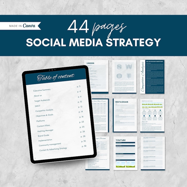 Social Media Strategy Template Editable in Canva teacherplanner in