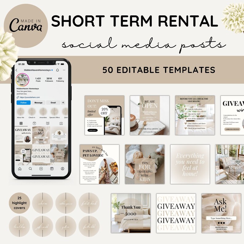 Short Term Rental Social Media Template Pack for Instagram and VRBO Etsy