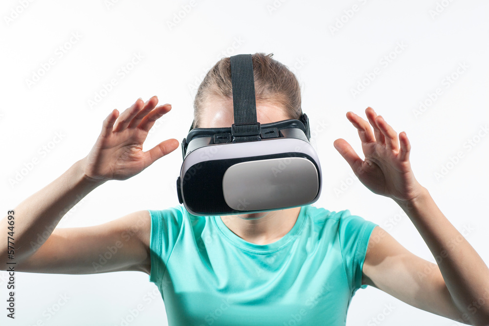 Young woman looking at futuristic social network map Stock Photo Alamy
