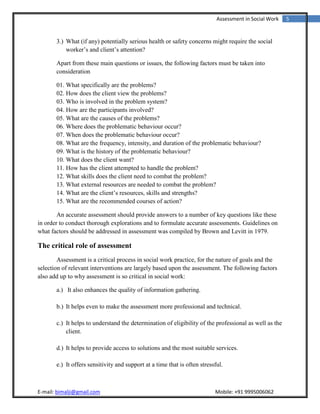 Psychosocial Assessment in Social Work Study notes Social Work Docsity