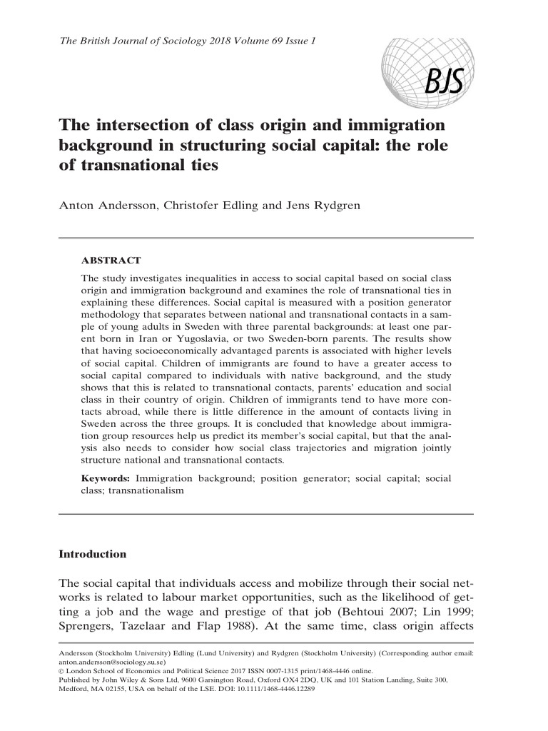 British Journal of Sociology 2017 Andersson The Intersection of