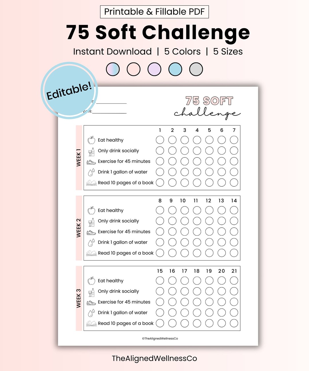 75 Soft Challenge Template EDITABLE 75 Soft Challenge Printable 75