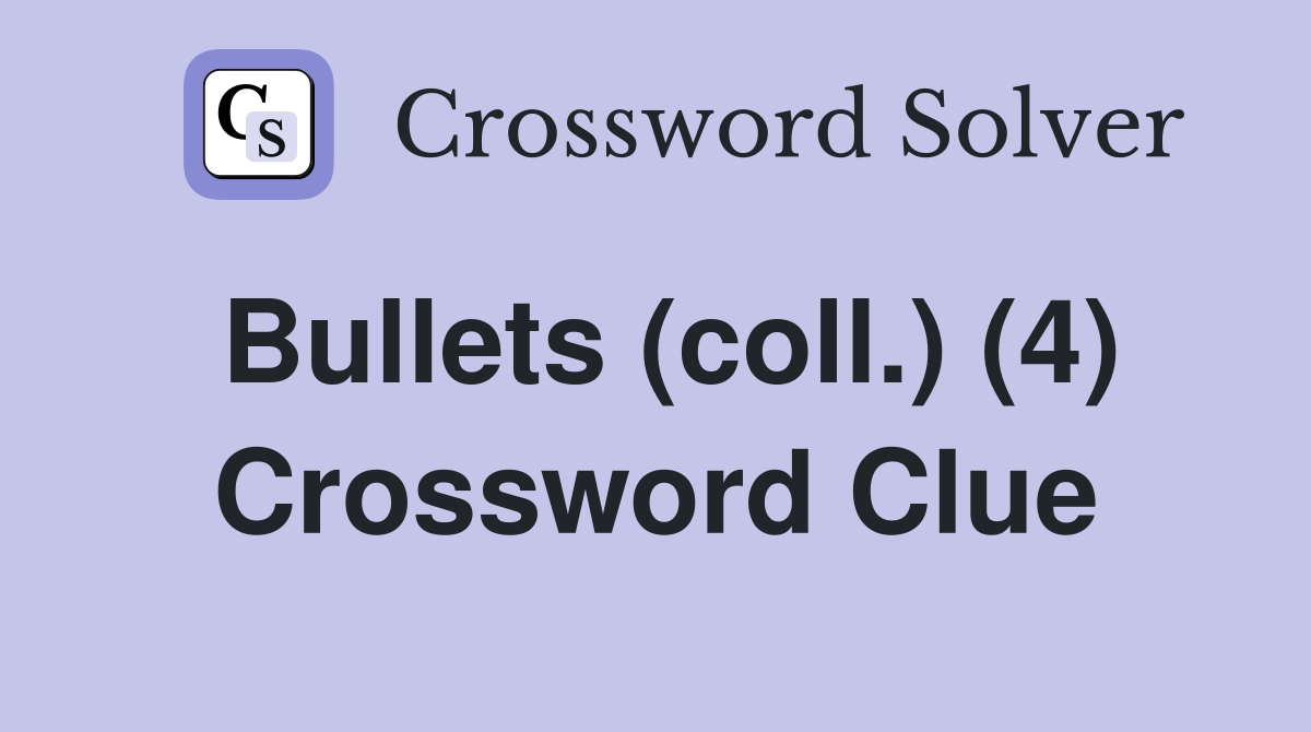 Bullets (coll ) (4) Crossword Clue Answers Crossword Solver