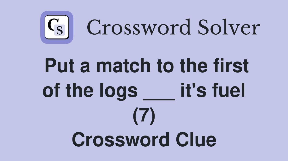 Put a match to the first of the logs it #39 s fuel (7) Crossword Clue