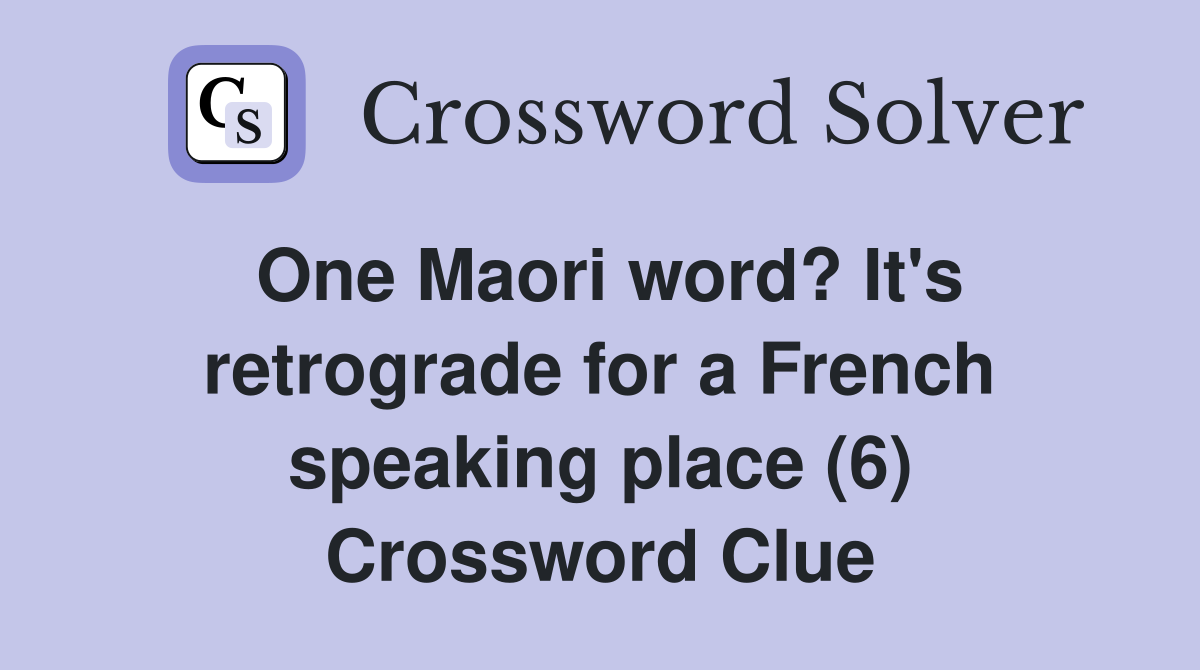 One Maori word? It #39 s retrograde for a French speaking place (6