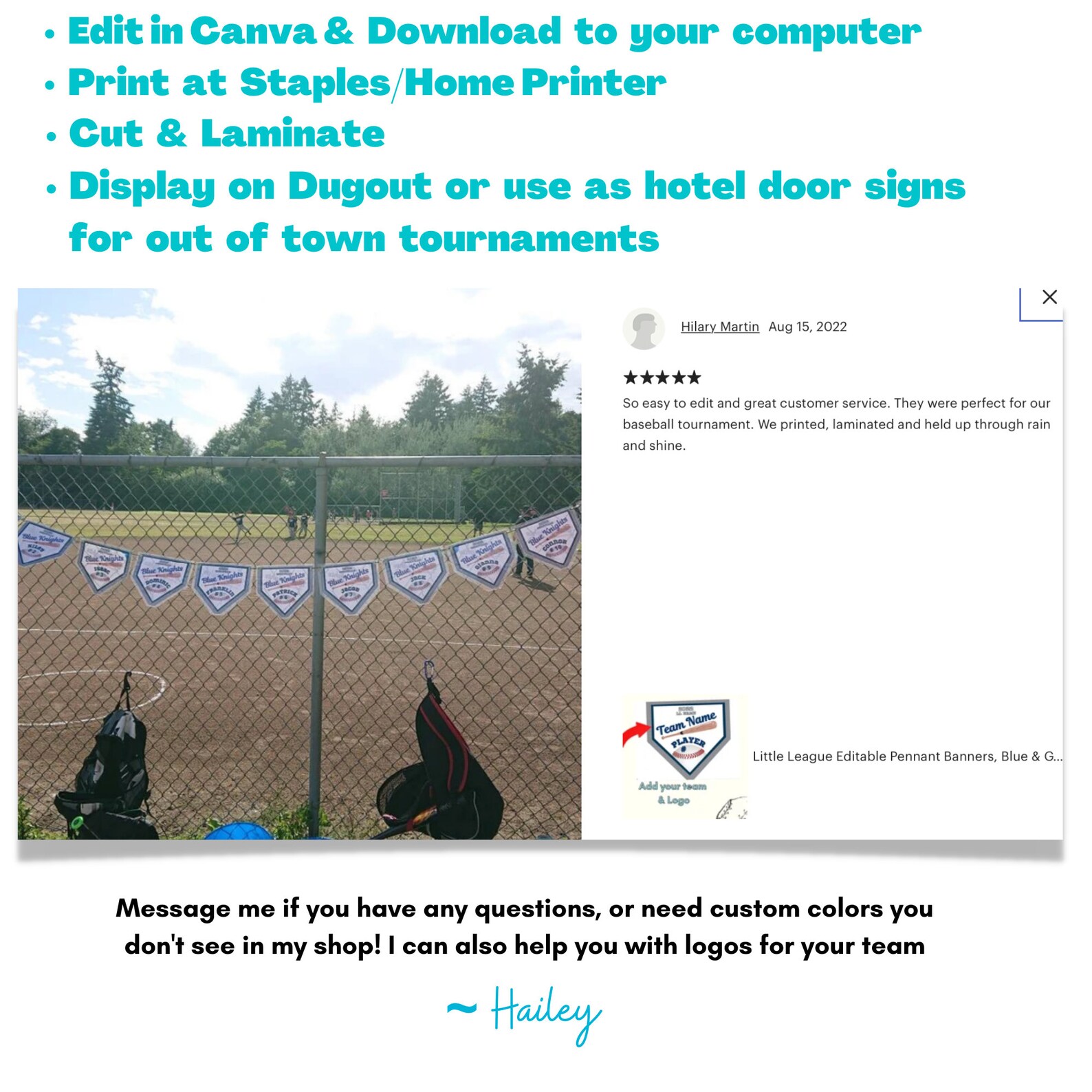 Softball Girls Banner Template Team Pennants Personalize for Any