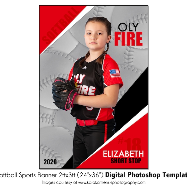 Softball Banner 5 2ftx3ft 24x36 Sports Digital Photoshop Template Youth