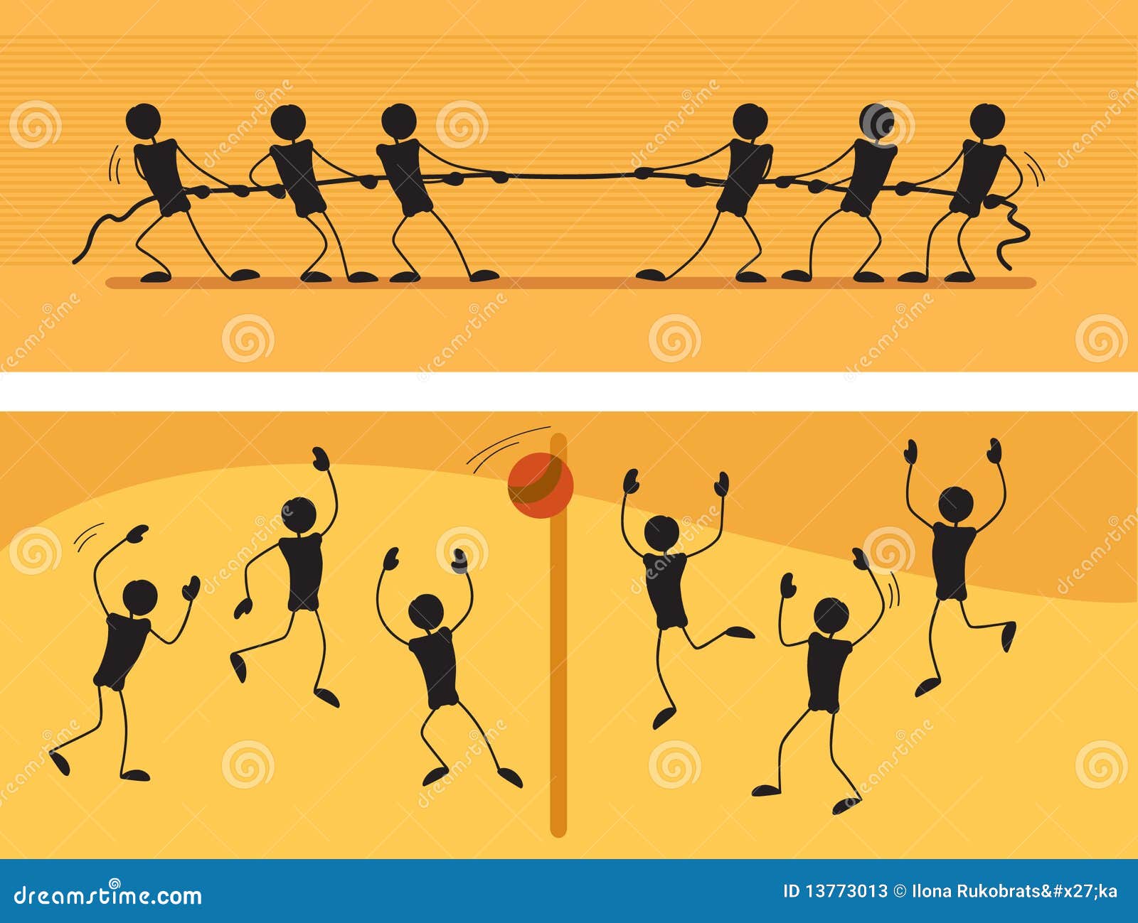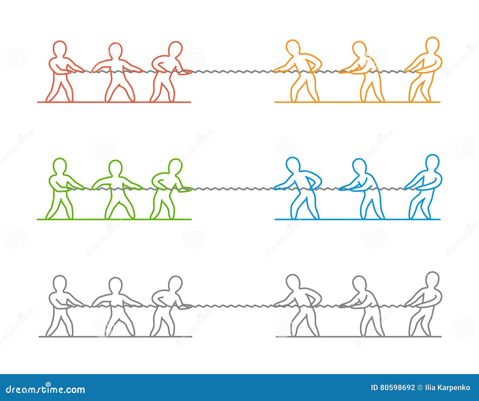 Set Of Stick Figures Tug Of War Flat Vector Illustration Stock