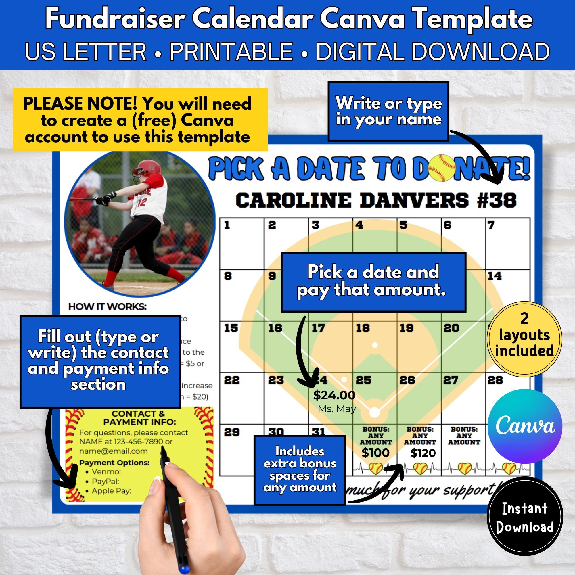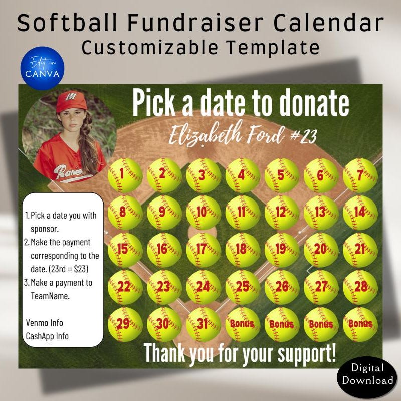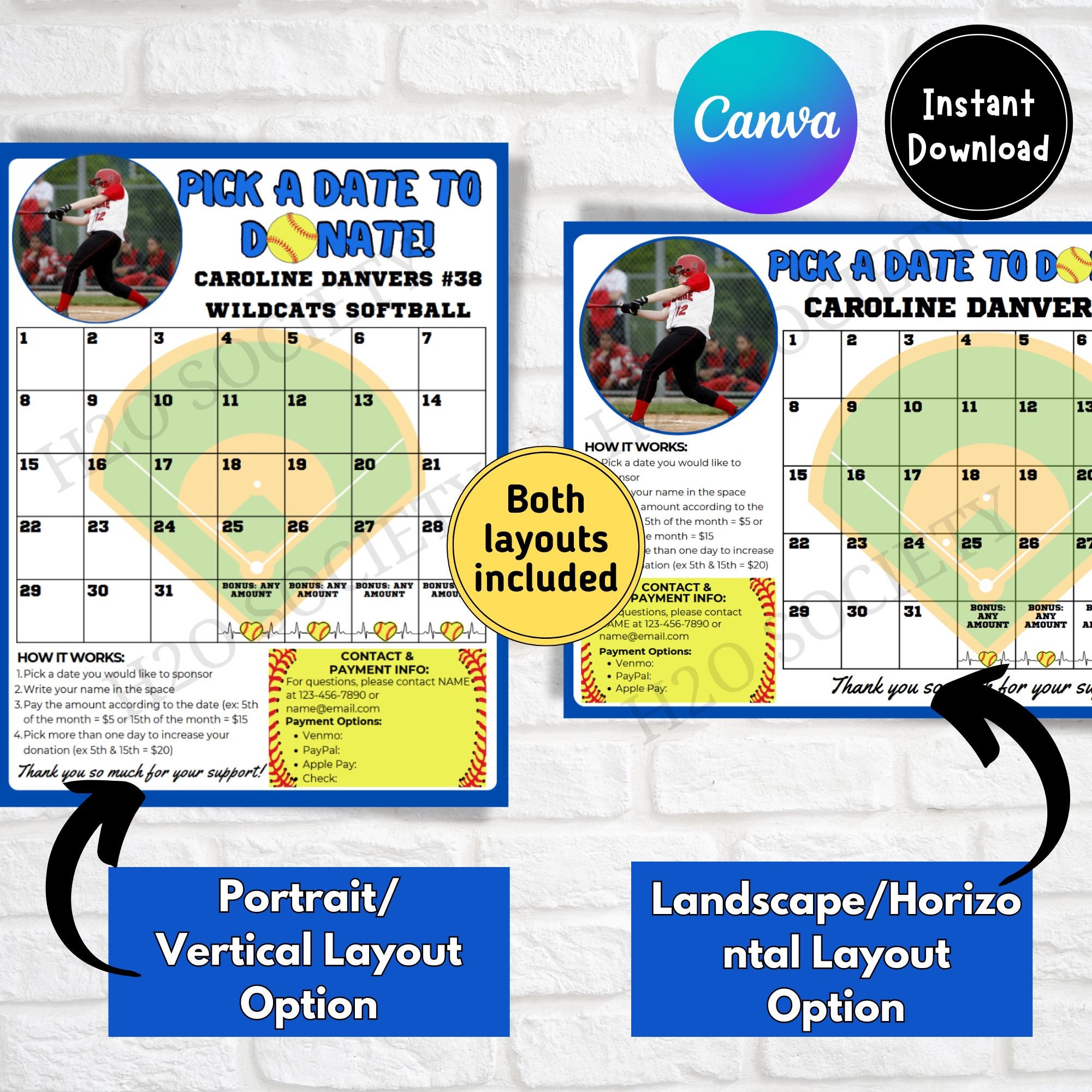 Editable Softball Calendar Fundraiser Pick a Date Printable (canva) Etsy