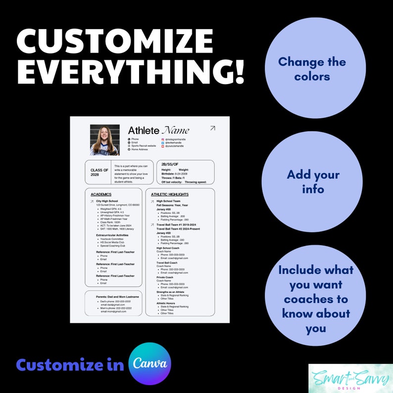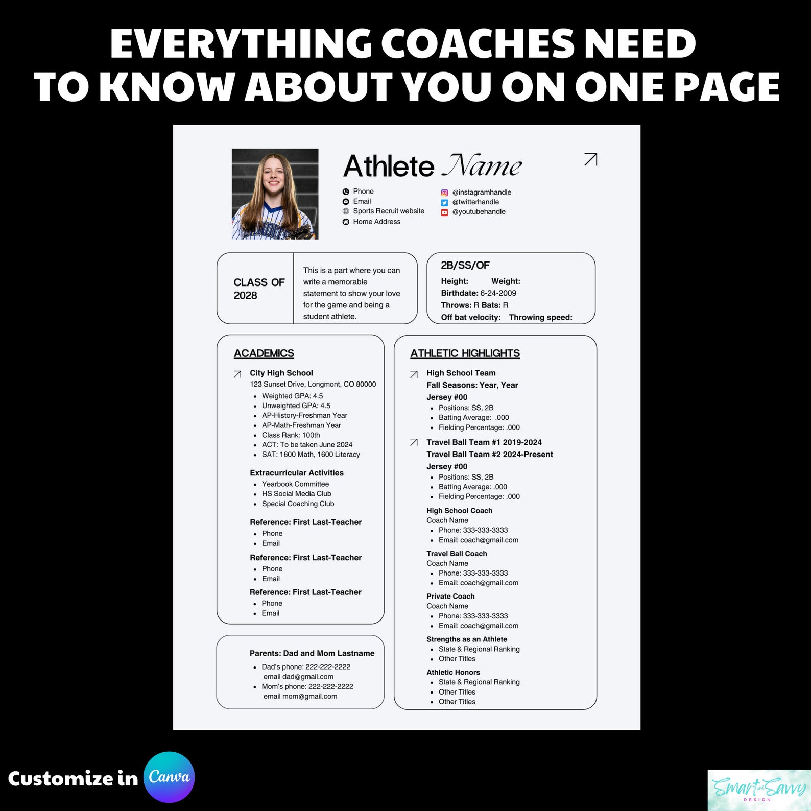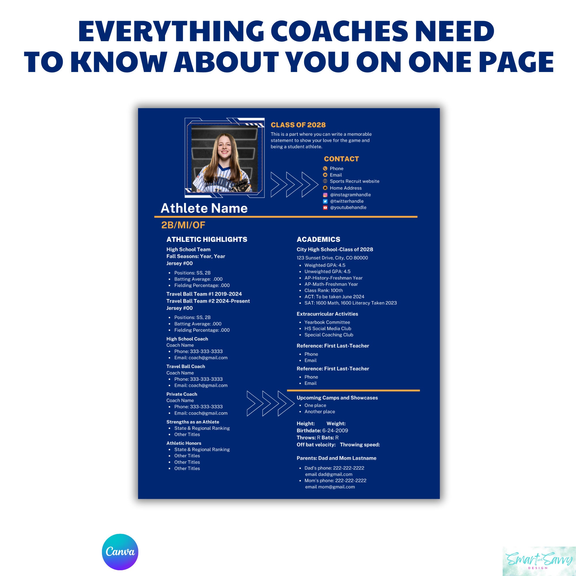 Individual Profile Sheet Photo College Recruiting Softball Baseball