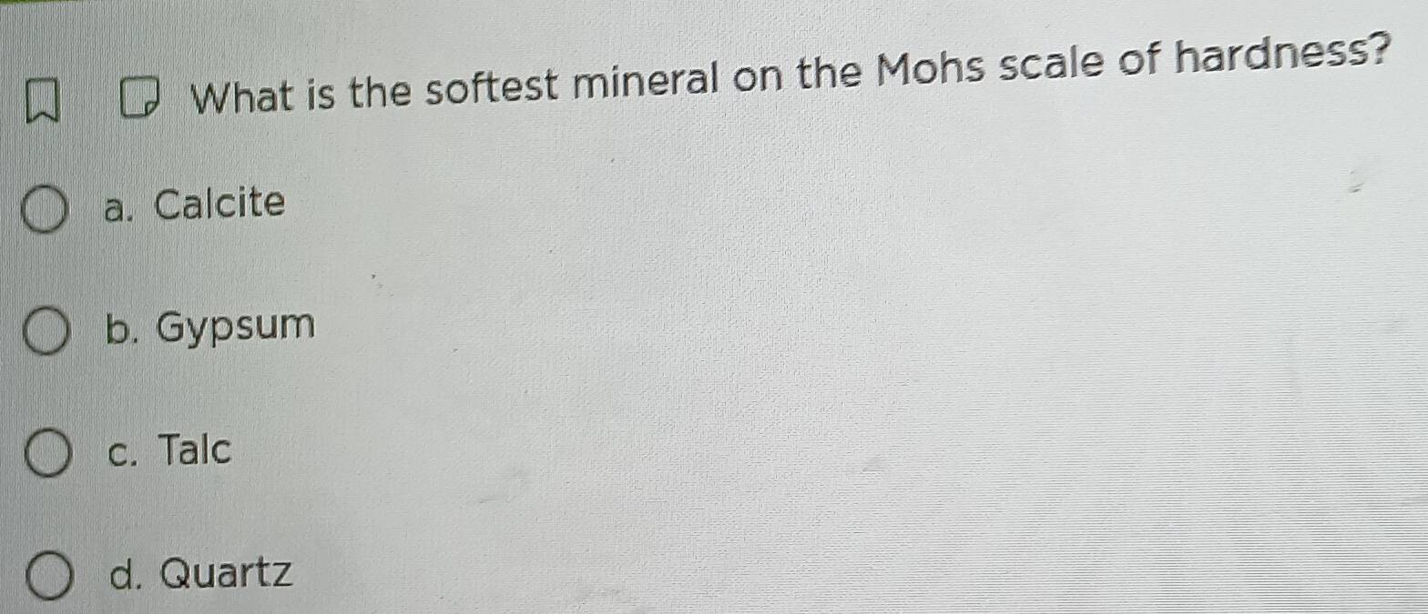Solved: What is the softest mineral on the Mohs scale of hardness? a