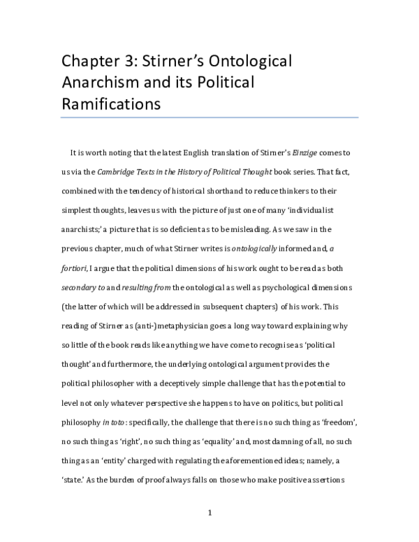 (DOC) Max Stirner #39 s Ontological Anarchism and Its Political