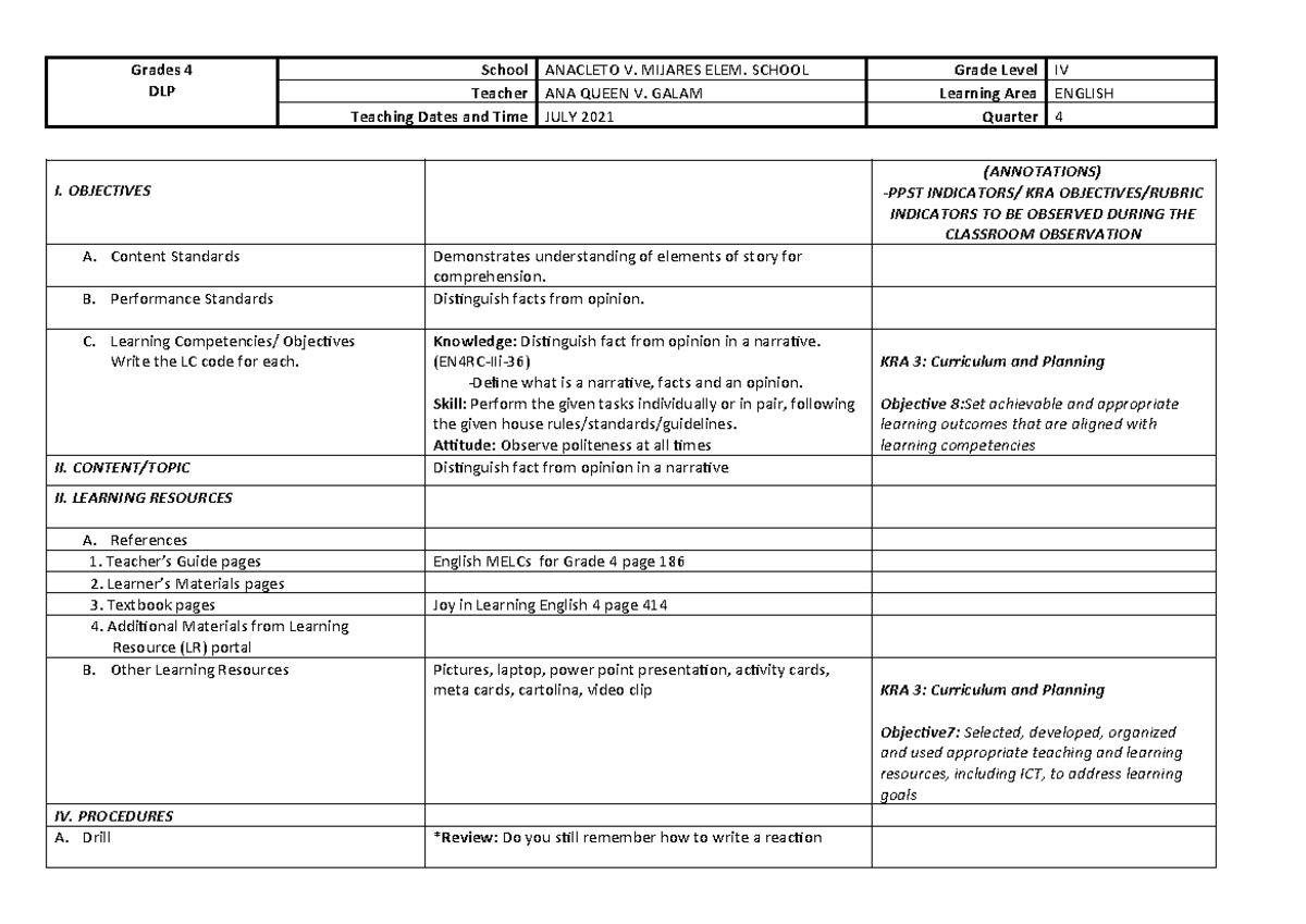 Cot dlp english 4 distingushing facts and opinions compress Grades 4
