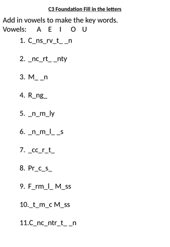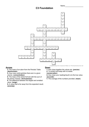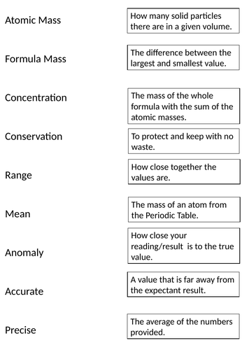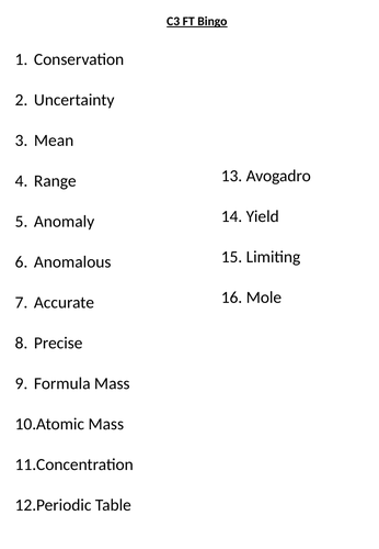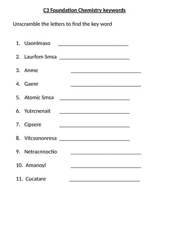 C3 Combined Chemistry Keyword Revision Teaching Resources