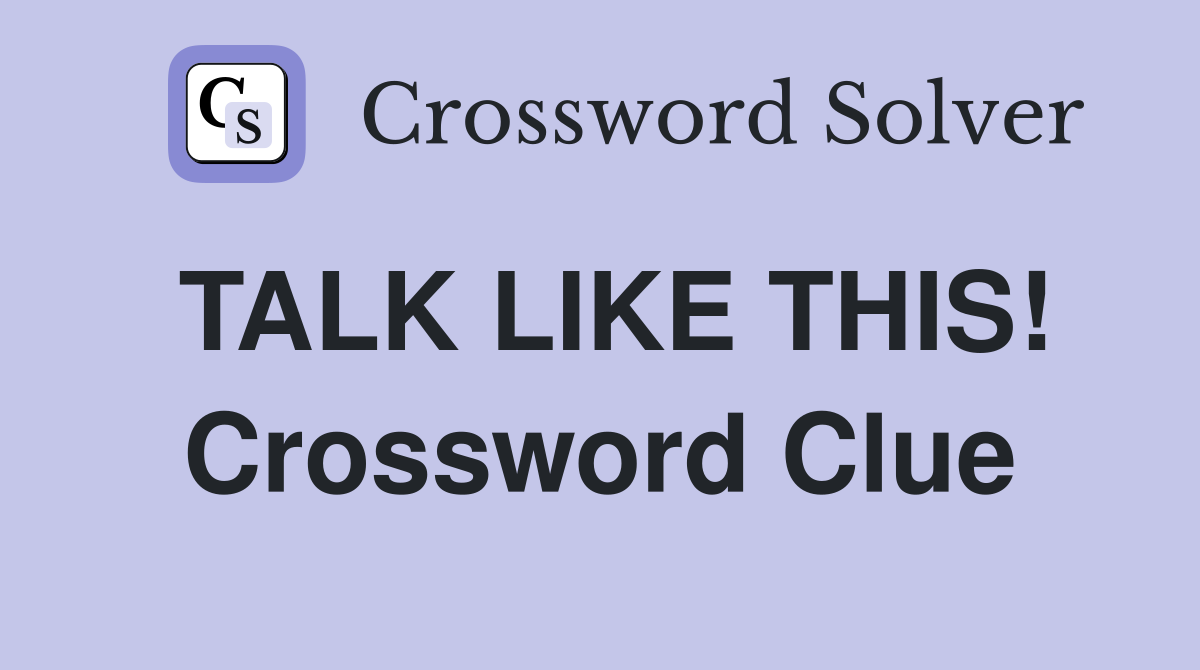 TALK LIKE THIS Crossword Clue Answers Crossword Solver