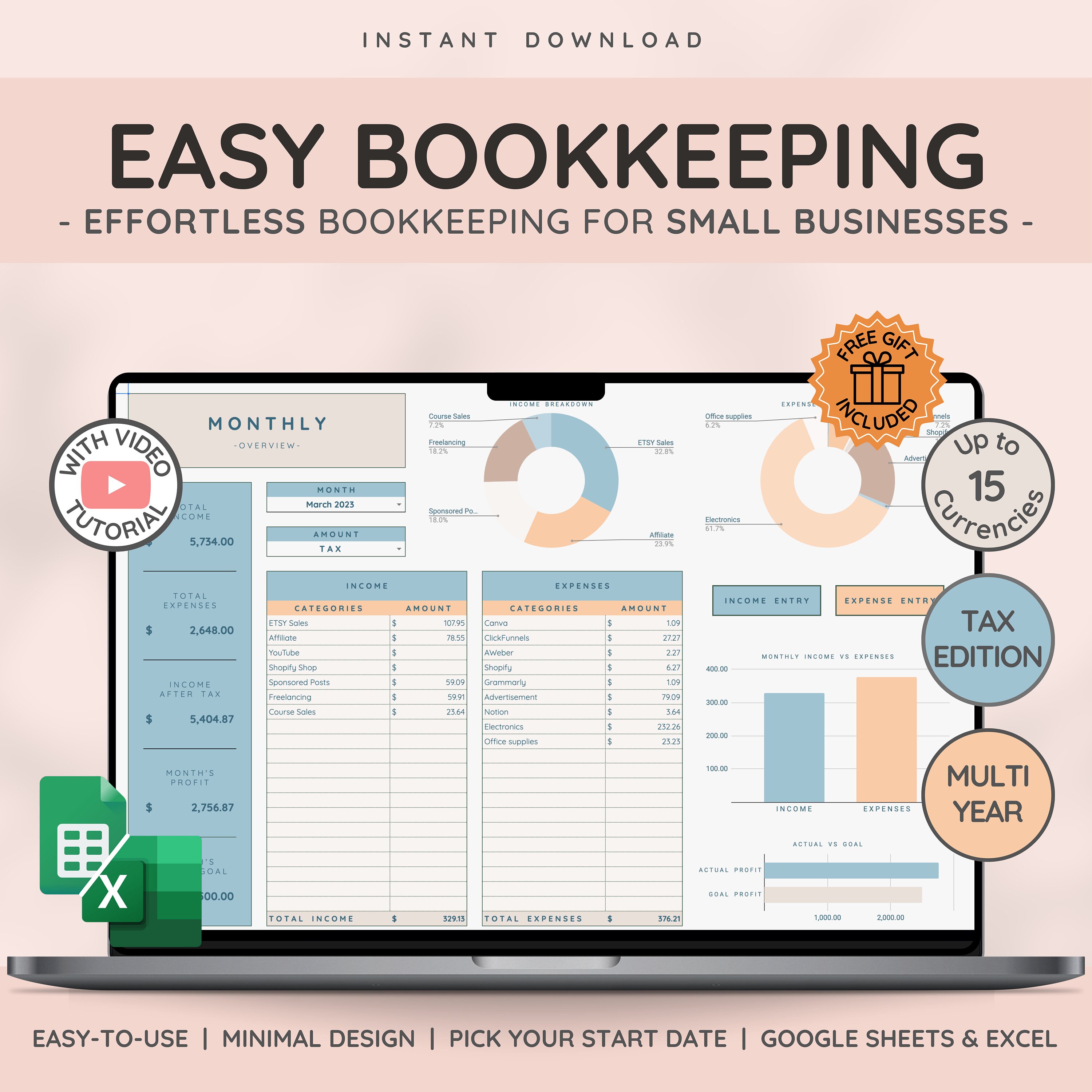 Bookkeeping Template for Business Accounting Sales Tracker Tax Planner