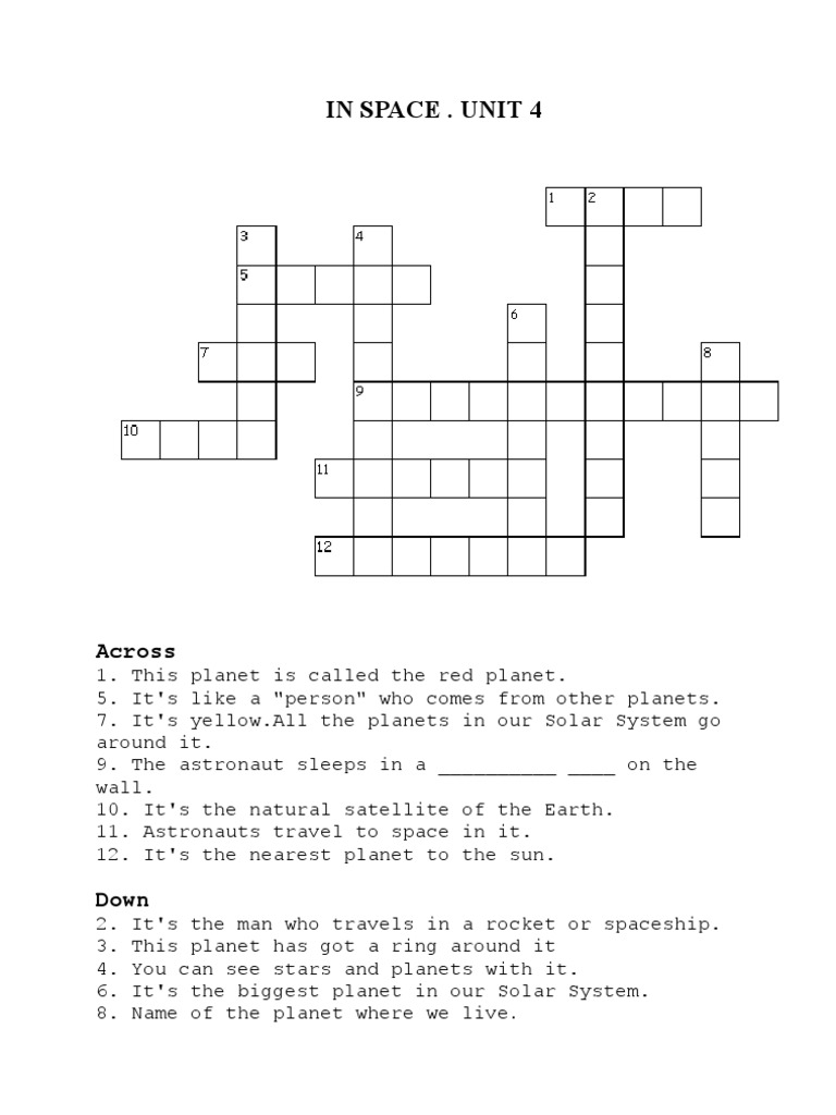 Space crossword Free Printable PDF Treasure hunt 4 Kids