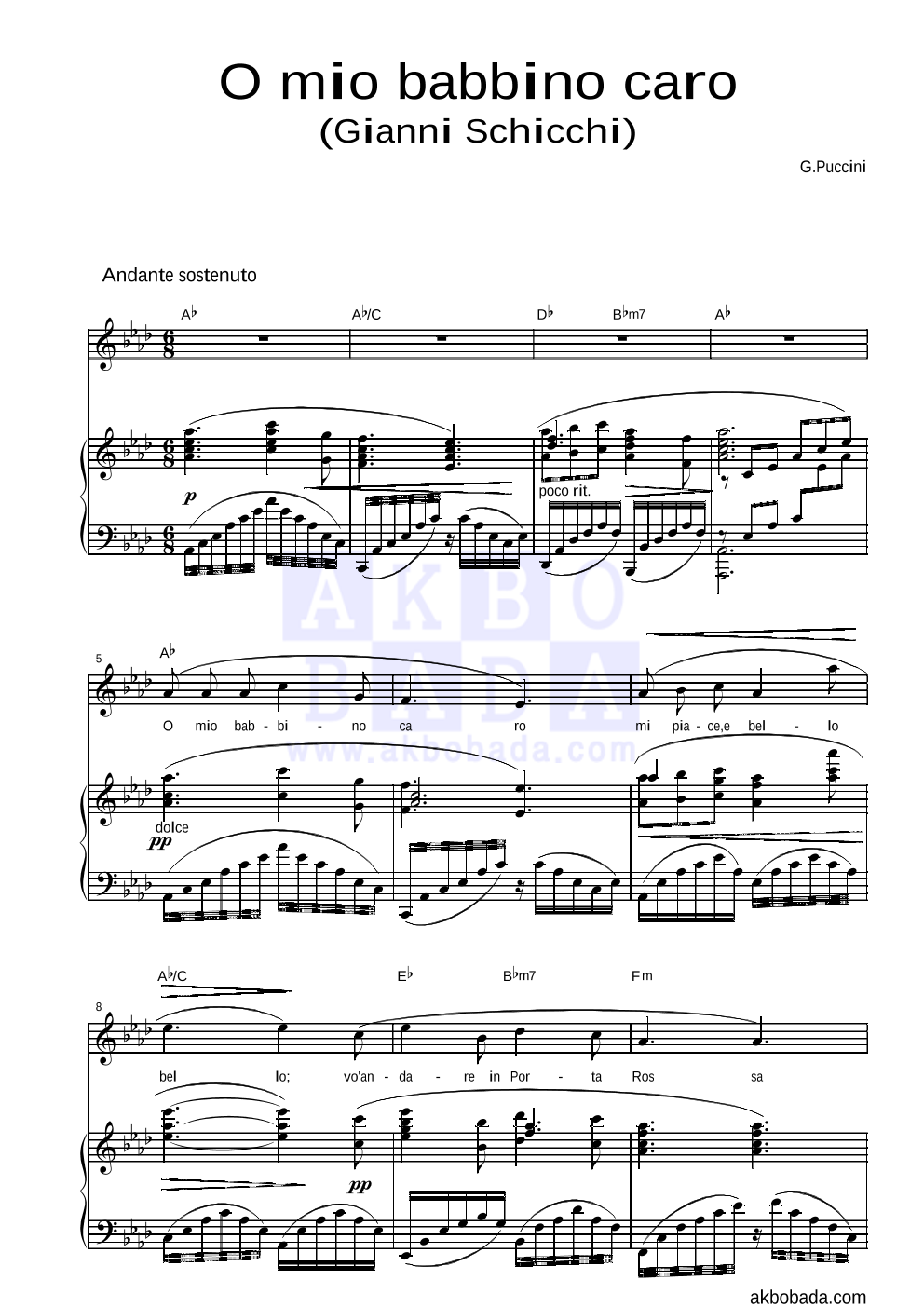 Oh My beloved Daddy (O mio babbino caro ) Key of A flat major Italian