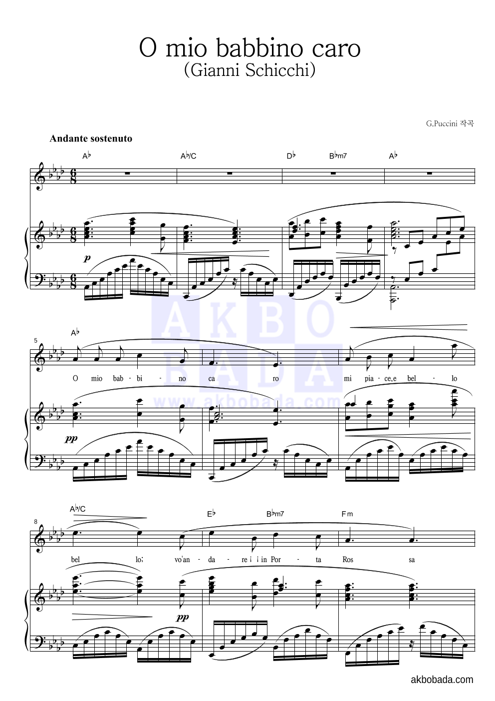 악보 gt G Puccini (푸치니) 오 사랑하는 나의 아버지 (O mio babbino caro) (쉬운 악보) by 정유식