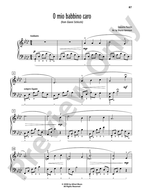 Giacomo Puccini quot O Mio Babbino Caro quot Sheet Music for Piano Solo