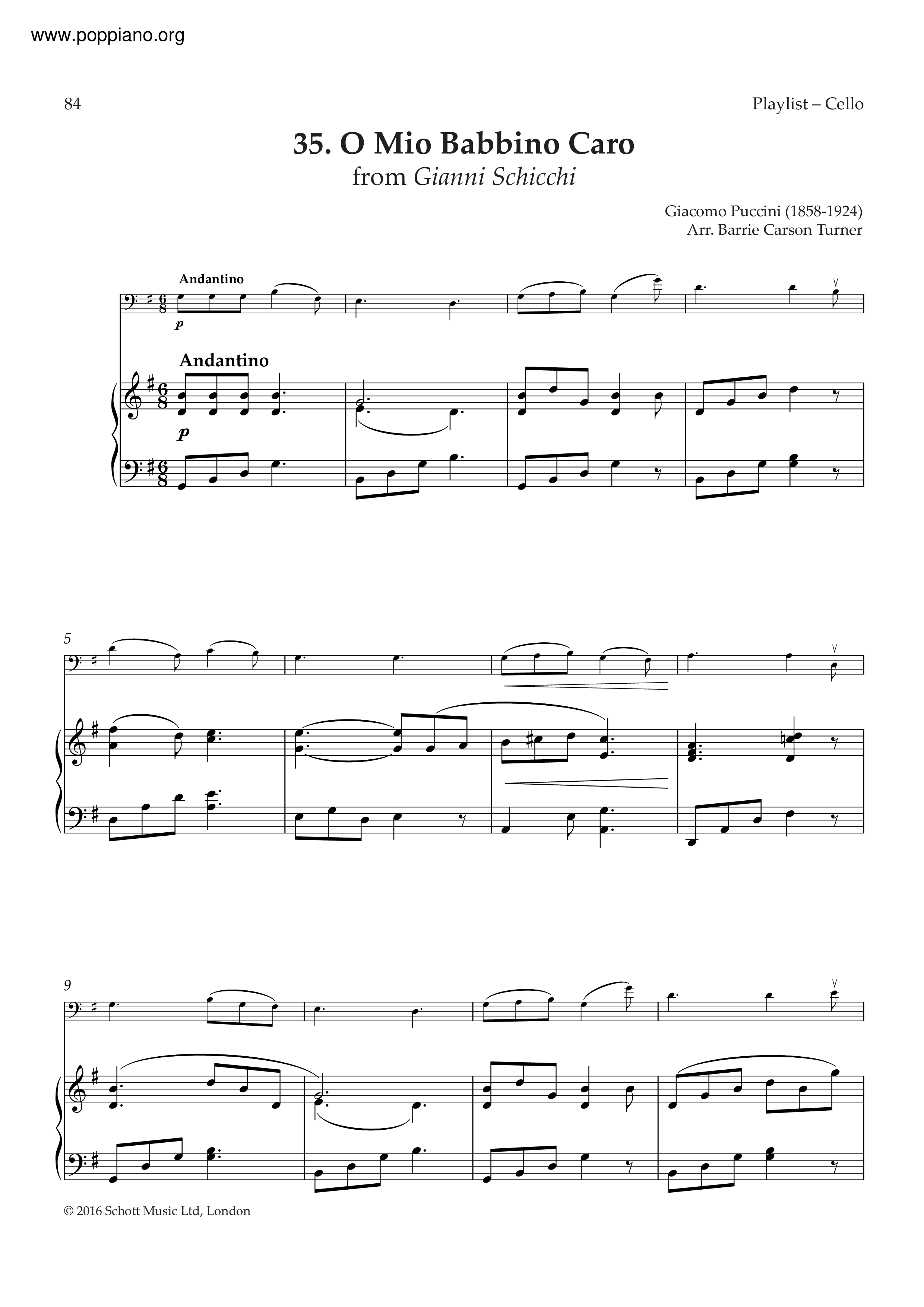 O Mio Babbino Caro Giacomo Puccini (Cello Piano) (arr Digital Book