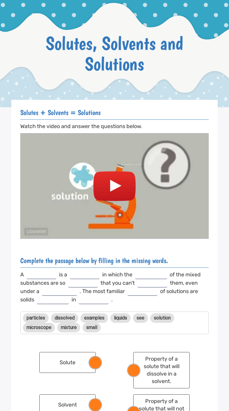 Solutes Solvents and Solutions Worksheet by Science Creations Shop
