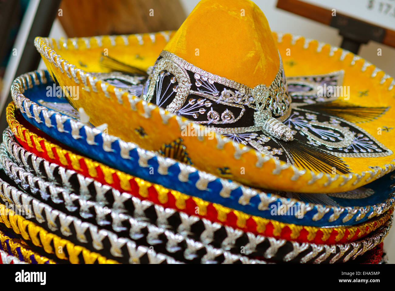Traditional Colorful Mexican Sombrero Hats For Sale Stock Photo