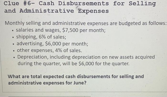 Solved Clue #92 #6 Cash Disbursements for Selling and Chegg com