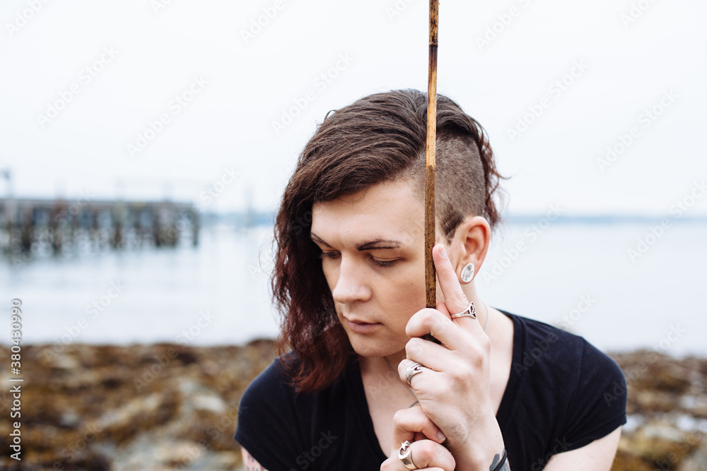 Close up portrait of a gender fluid or non binary teenager with