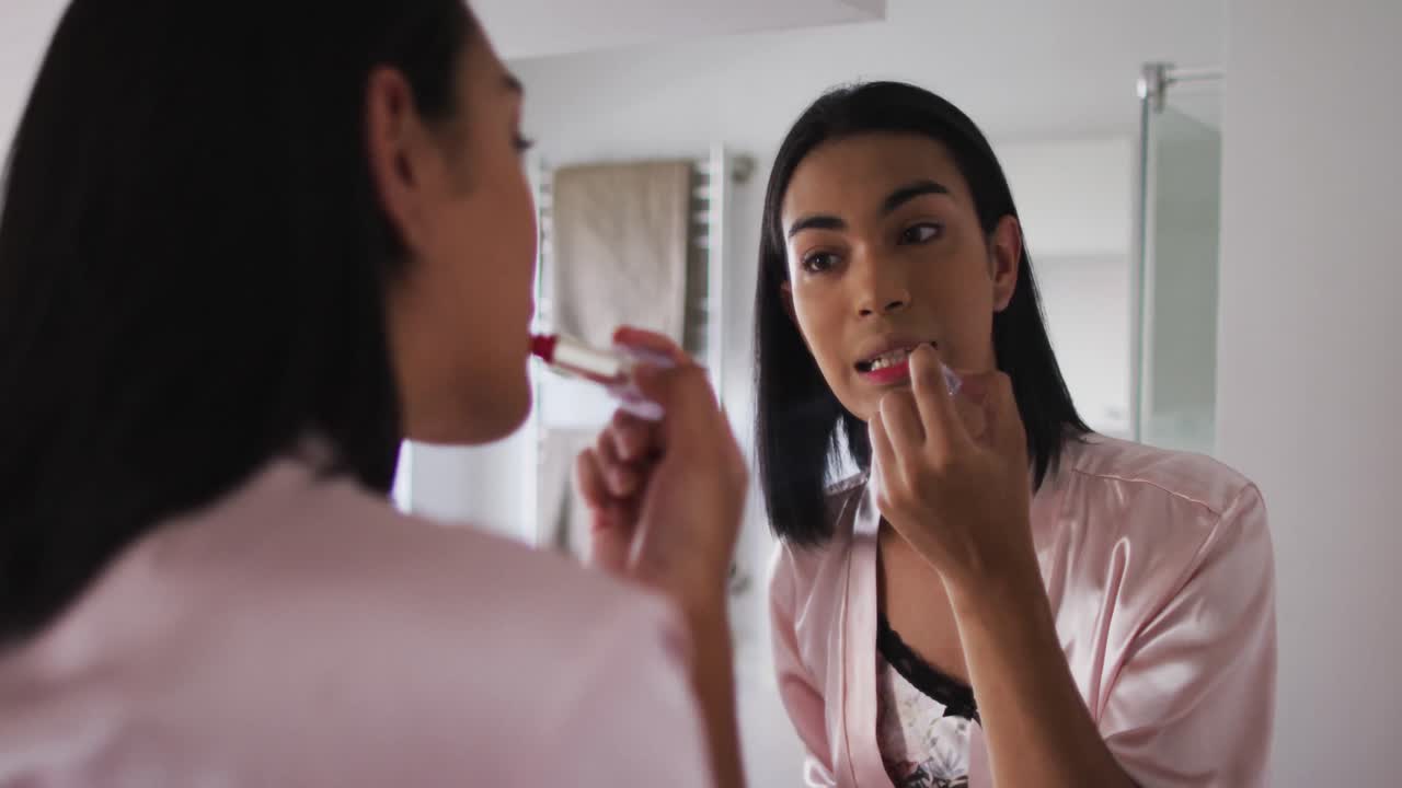 Mixed Race Gender Fluid Person Standing In Bathroom And Using A