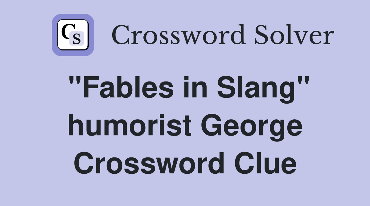 quot Fables in Slang quot humorist George Crossword Clue Answers Crossword