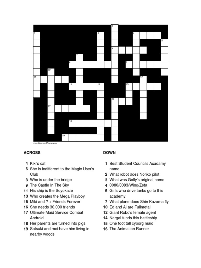 Here are some of the images for Some Manga Adaptations Crossword that we found in our website database.