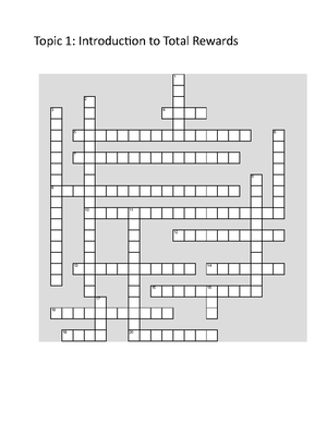 Topic 1 Introduction to Total Rewards Crossword Puzzle Topic 1