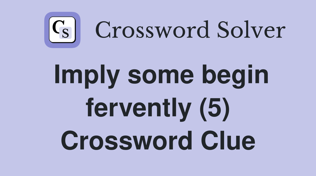 Imply some begin fervently (5) Crossword Clue Answers Crossword Solver