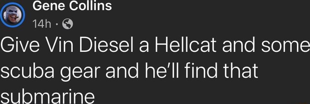 Gene Collins Give Vin Diesel a Hellcat and some scuba gear and he #39 ll