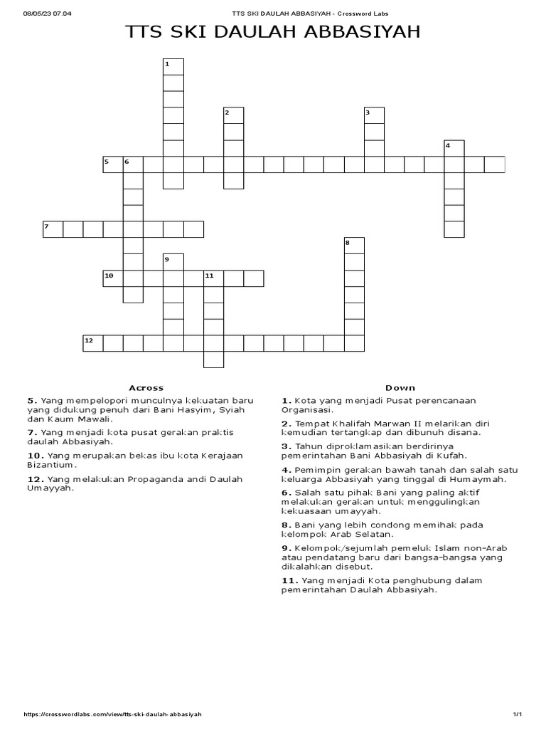 TTS SKI DAULAH ABBASIYAH Crossword Labs PDF