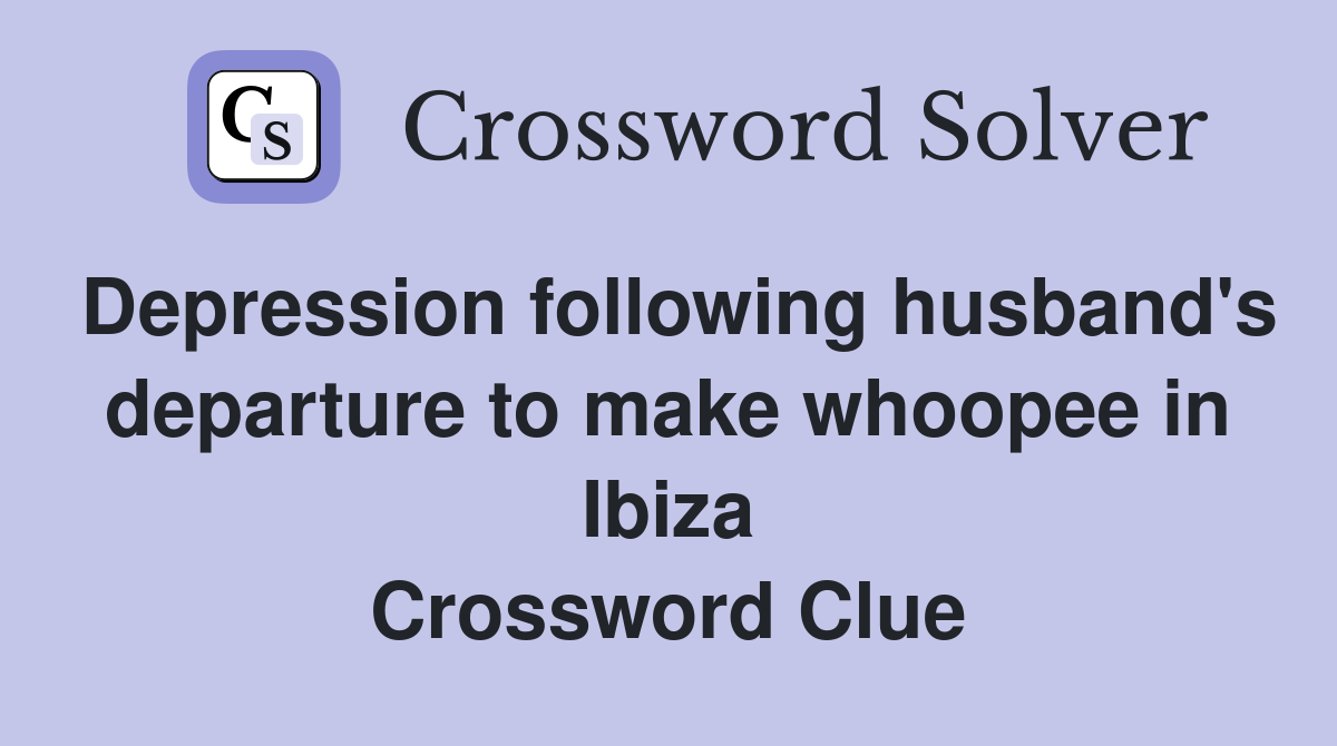 Depression following husband #39 s departure to make whoopee in Ibiza