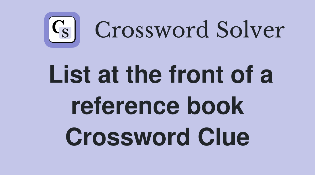 List at the front of a reference book Crossword Clue Answers