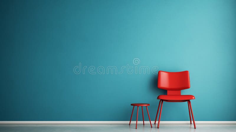 Red Chair on Blue Wall Background 3d Render Illustration Mock Up Stock