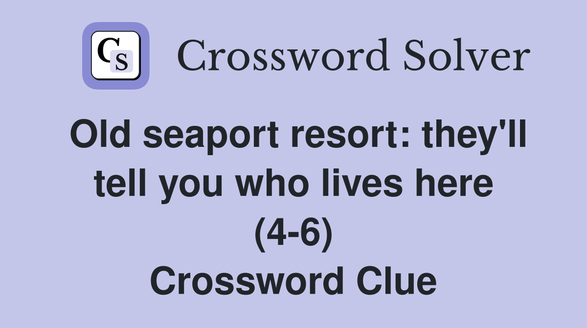 Old seaport resort: they ll tell you who lives here (4 6) Crossword