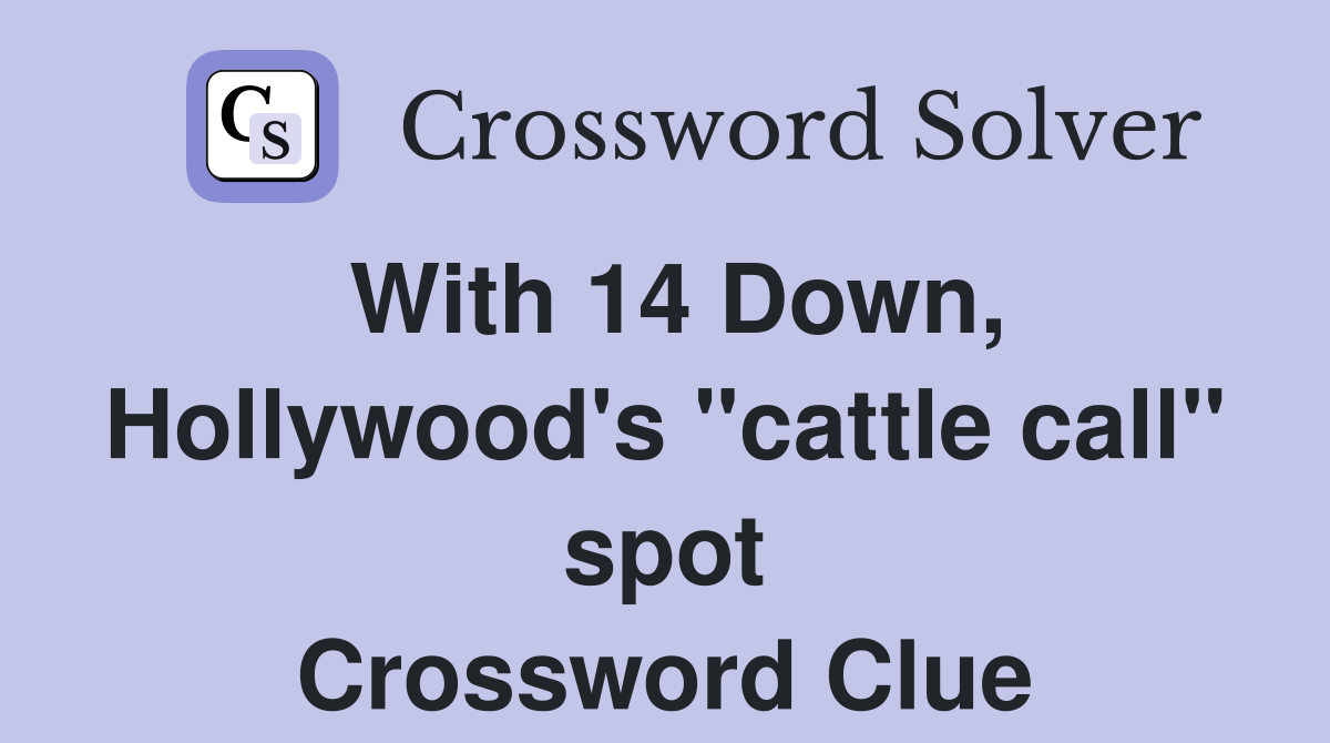 With 14 Down Hollywood #39 s quot cattle call quot spot Crossword Clue Answers
