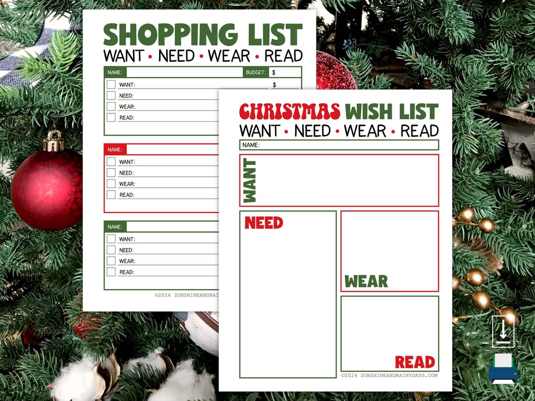 Printable Want Need Wear Read Christmas Wish List • Something You