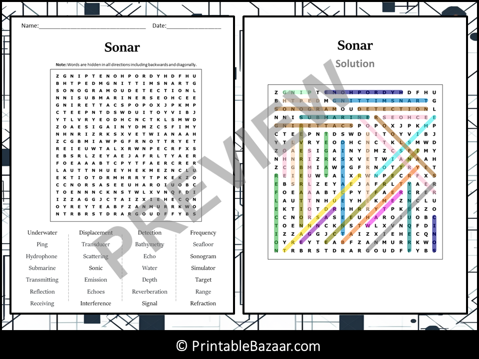Sonar Word Search Puzzle Worksheet Activity by Word Search Corner
