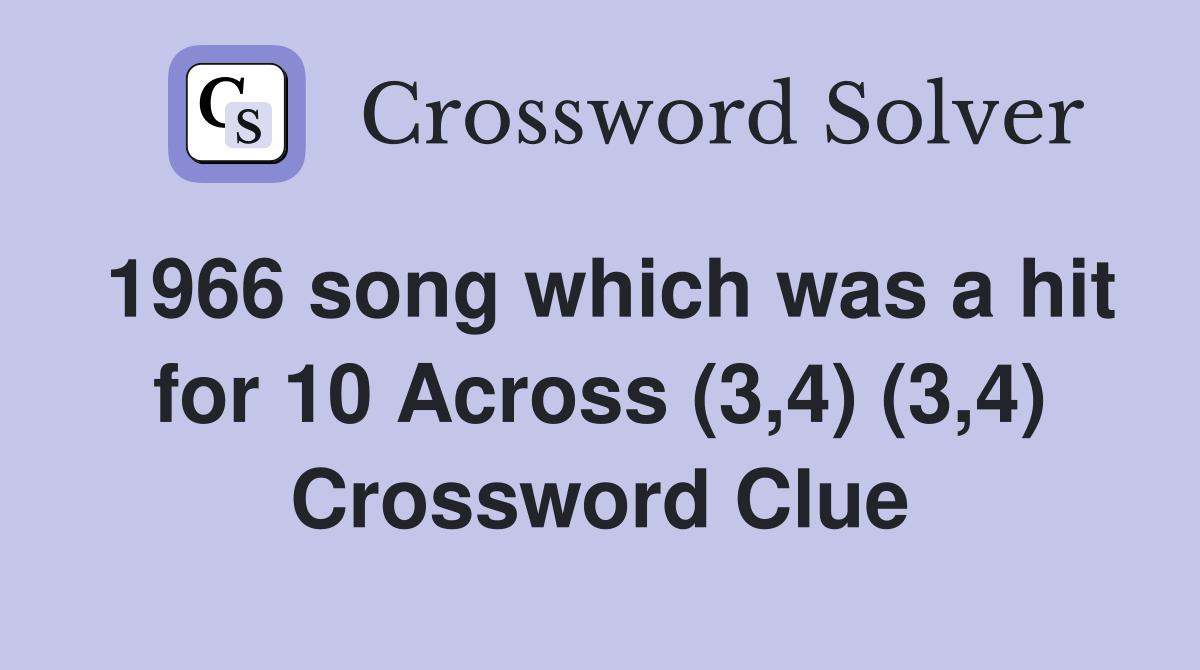 1966 song which was a hit for 10 Across (3 4) (3 4) Crossword Clue