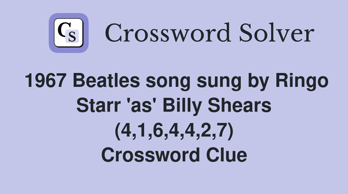1967 Beatles song sung by Ringo Starr as Billy Shears (4 1 6 4 4 2 7