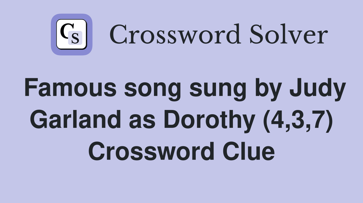 Famous song sung by Judy Garland as Dorothy (4 3 7) Crossword Clue