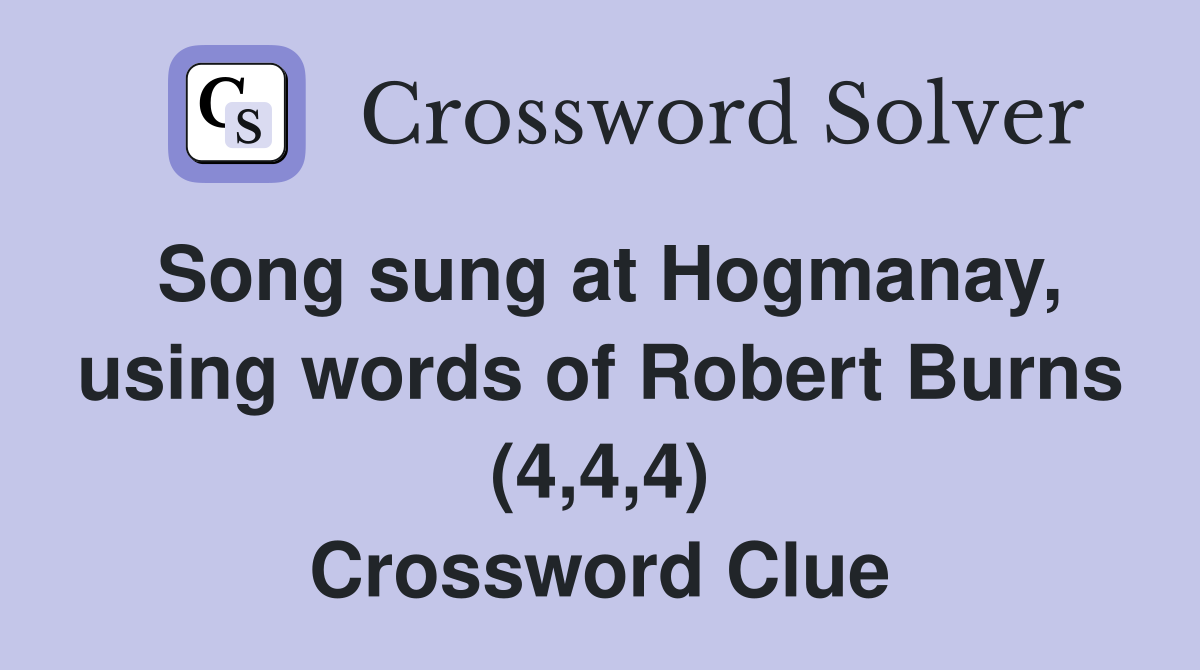 Song sung at Hogmanay using words of Robert Burns (4 4 4) Crossword