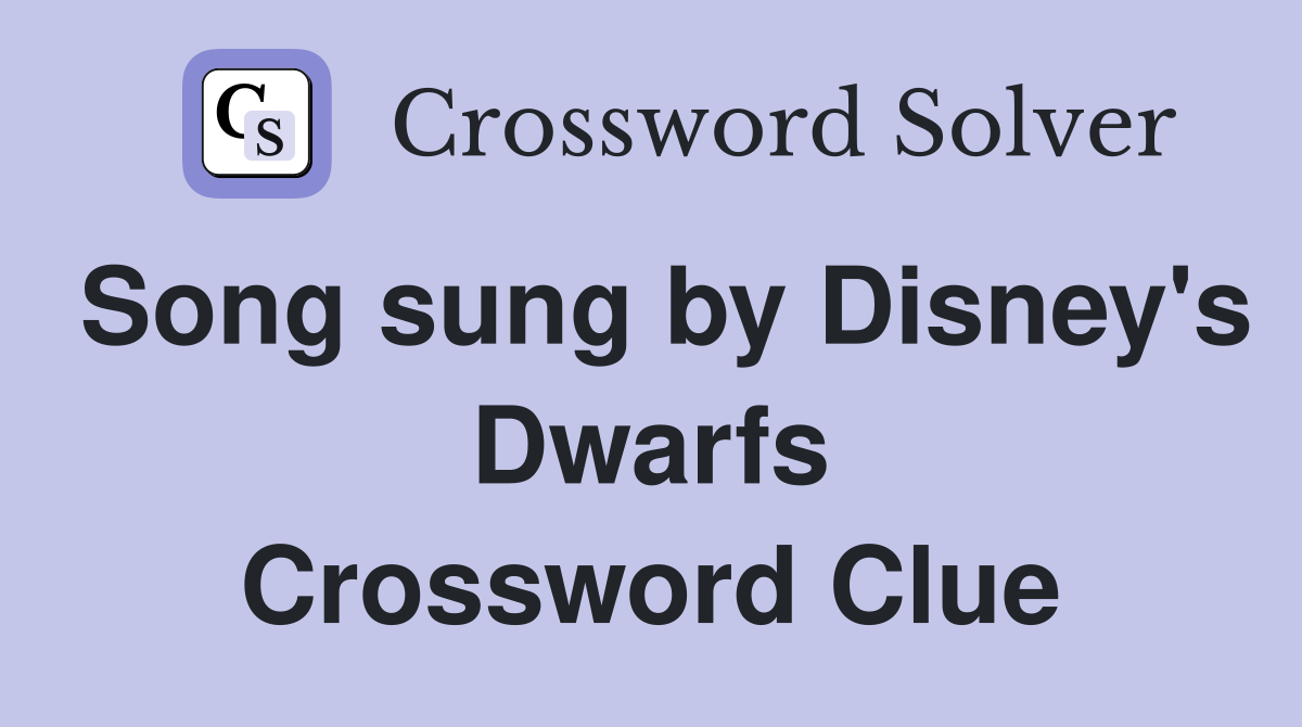 Song sung by Disney s Dwarfs Crossword Clue Answers Crossword Solver